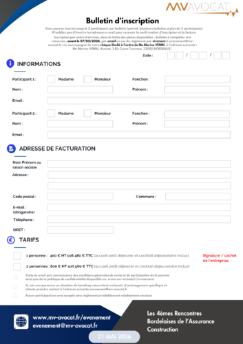 Pour tout renseignement, contactez l’équipe par email à evenement@mv-avocat.fr ou appelez le 05 56 77 24 14